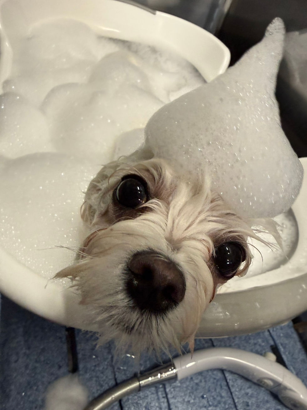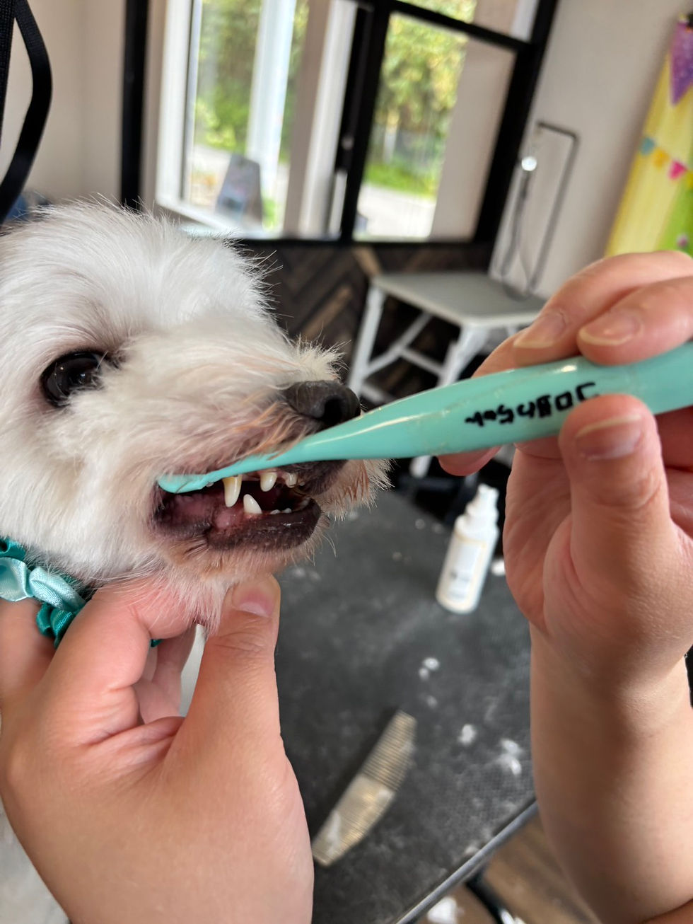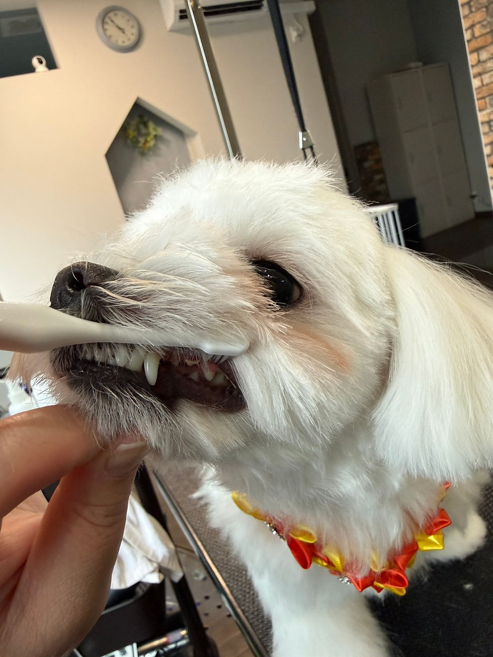 トリミングコース+ホイップアロマバス+SPホワイトシャンプー+ホワイトリムーバー+肉球ケア+はみがきをご利用いただきました✂