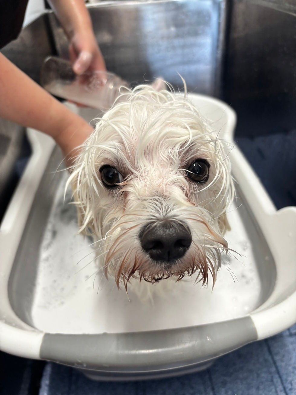 トリミングコース+炭酸泉+酵素液+SPホワイトシャンプー+ホワイトリムーバー+肉球ケア+はみがきをご利用いただきました✂